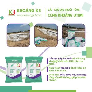 Khoáng Utimi là một sản phẩm được sử dụng rộng rãi trong việc cải tạo ao nuôi. Với công dụng là khôi phục và tăng cường khoáng chất cho đáy ao nuôi, sản phẩm này giúp đảm bảo môi trường sống tốt nhất cho tôm và các loài thủy sản khác.